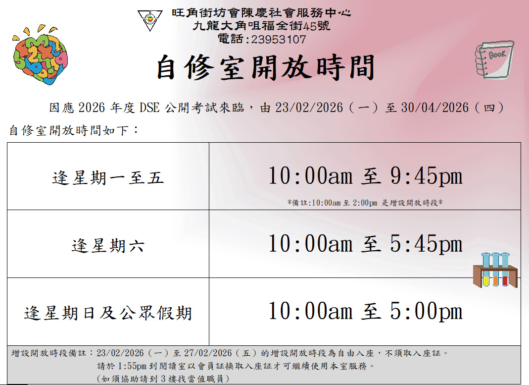 陳慶社會服務中心2026年1月至3月活動